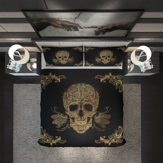 Skullistic™ Golden Sugar Skull Duvet Cover Set