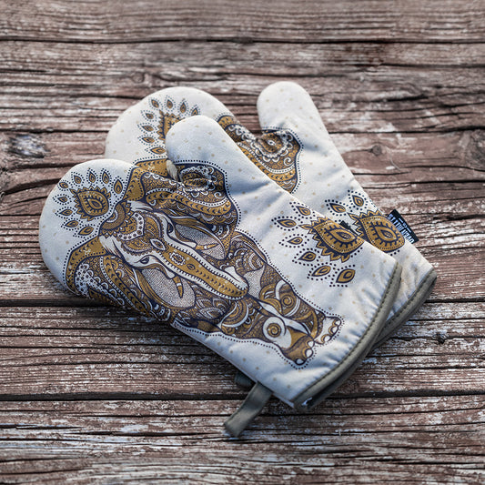 Skull Vintage Flower Oven Mitts And Potholder Set