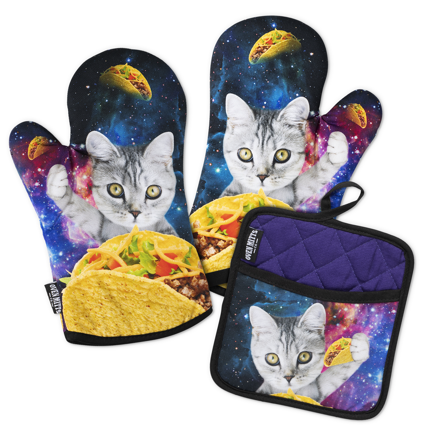 Galaxy Taco Cat Oven Mitts And Potholder Set