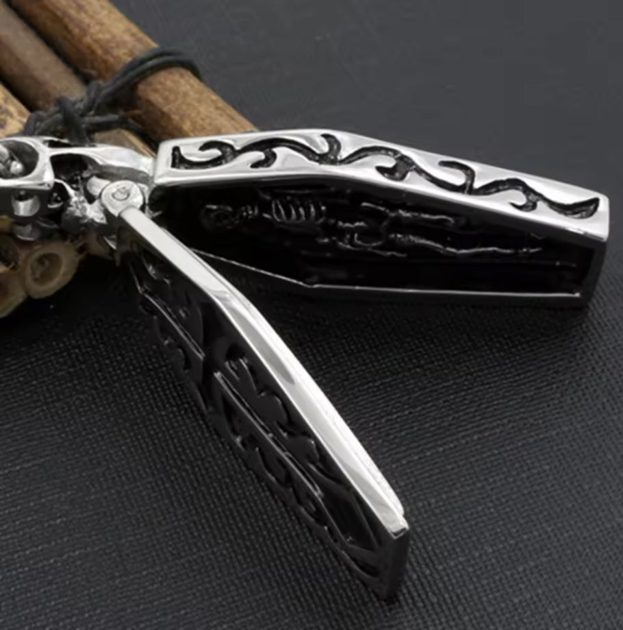 The Coffin Rest Skeleton Necklace offers a striking and unique design, perfect for those who appreciate gothic aesthetics. Featuring a detailed skeleton resting inside a coffin, this pendant captures a sense of mystery and intrigue.
