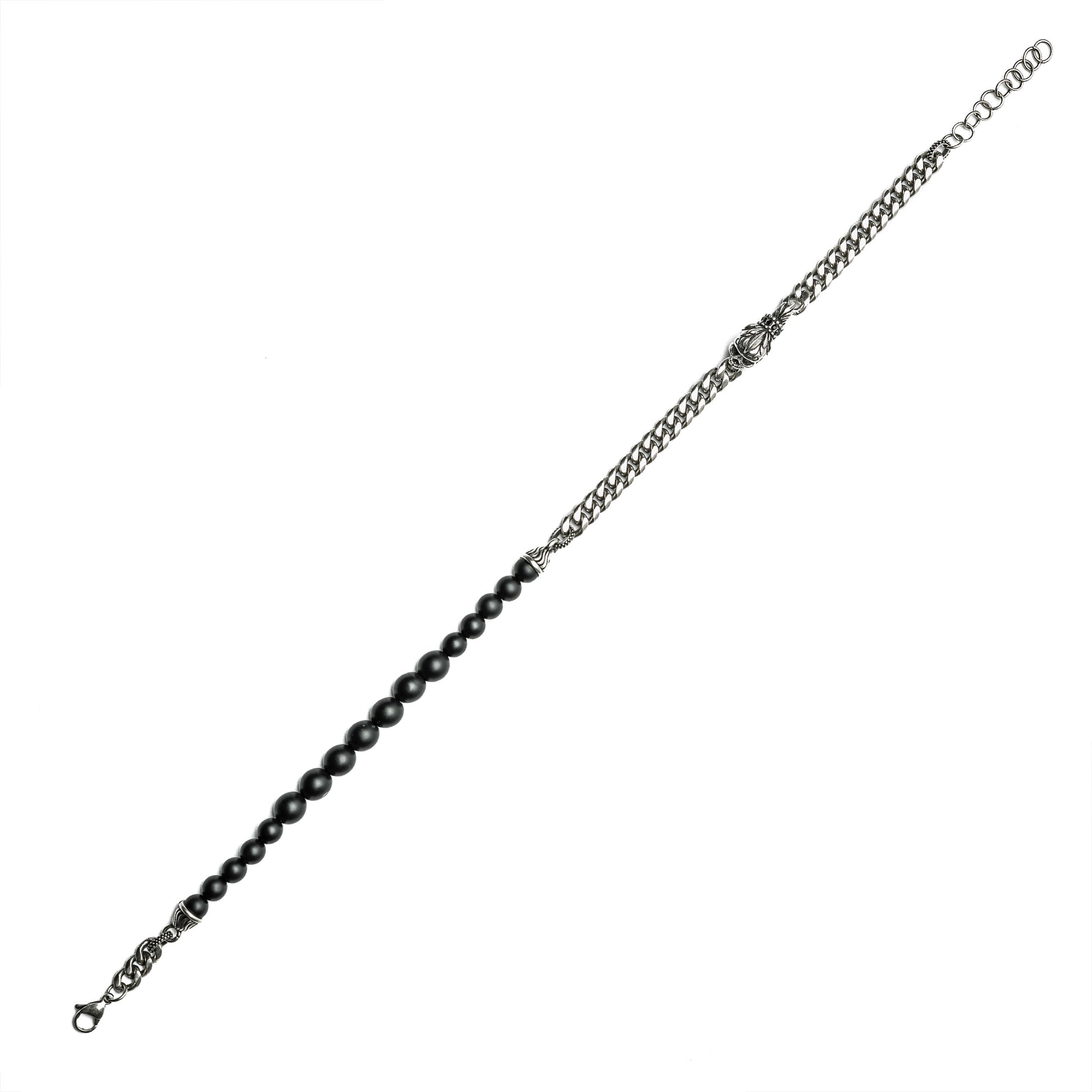 Slip on this double-layered talisman and feel the weight of centuries in each polished skull and obsidian bead. The burnished stainless steel skulls reflect light like ancient relics, while the matte-black obsidian stones anchor you in power and presence.